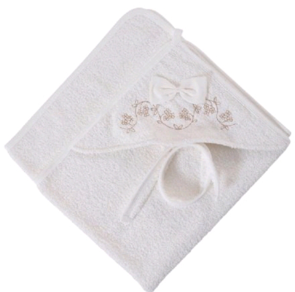 Κάπα πετσέτα βαμβάκι με κέντημα προβατάκι σετ με πετσετέ γάντι πλυσίματος