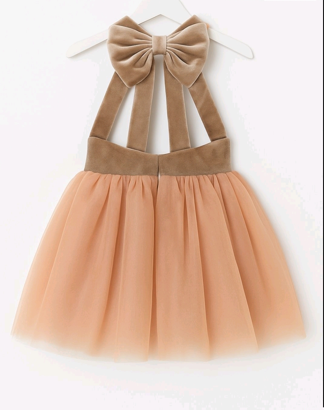 • Φόρεμα Αμπιγιέ με βελούδινο πάνω μέρος και στρώσεις τούλι σε χρώμα καραμέλας
