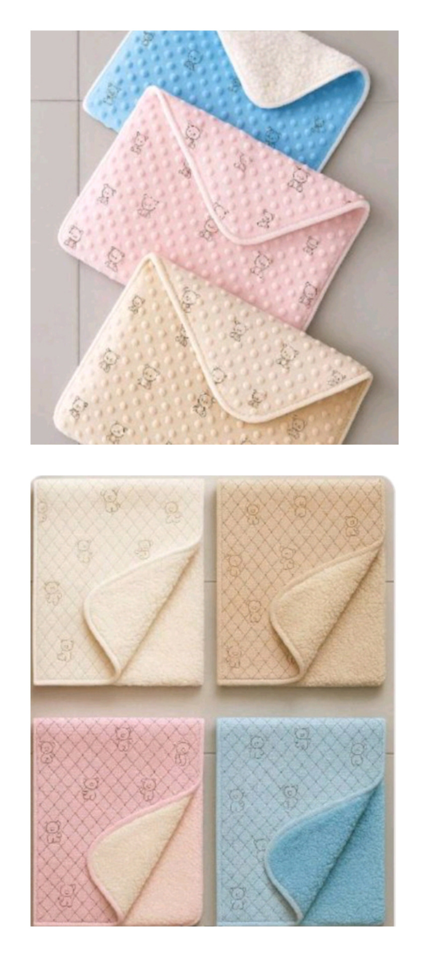 Κουβέρτα αγκαλιάς λούτρινη φλις μονόχρωμη με διακριτικό σχέδιο αρκουδάκια και πίσω όψη σέρπα