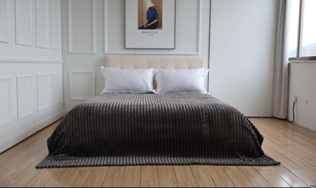 Κουβέρτα φλίς-ριχτάρι 150*200 με ανάγλυφη ρίγα σε  εκρού, κάμελ, σκούρο γκρι και ρογδί