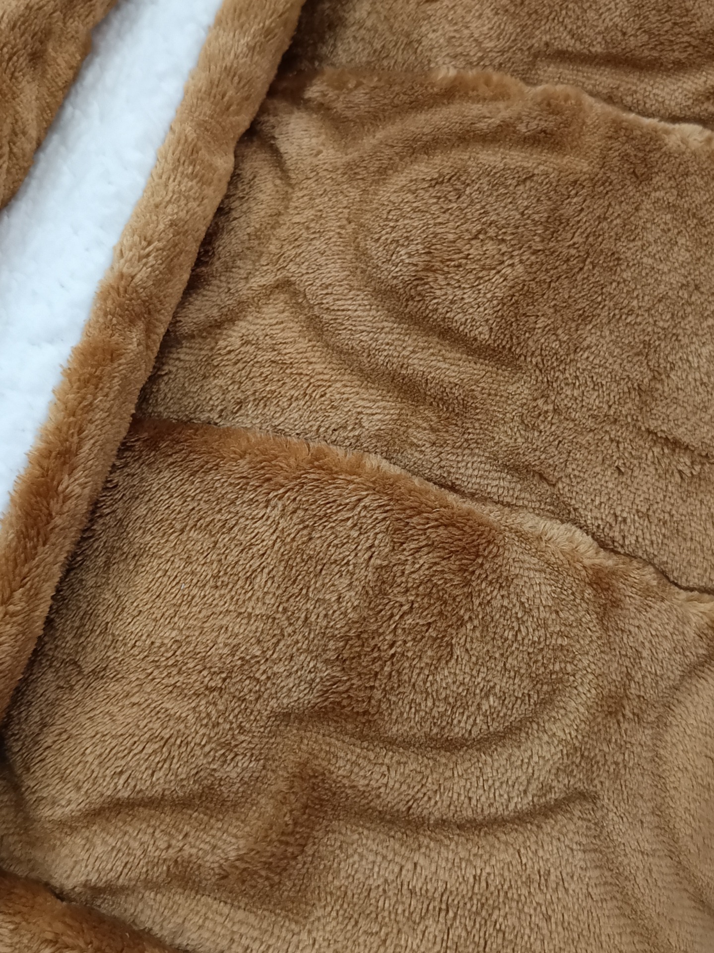 • Σε χρώμα κάμελ καφέ με πίσω πλευρά σέρπα λευκό