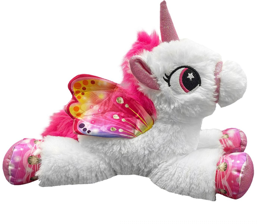Λούτρινο μονόκεροςσε λευκό χρώμα με πολύχρωμα στοιχεία σε δύο διαστάσεις 40εκ και 75εκ