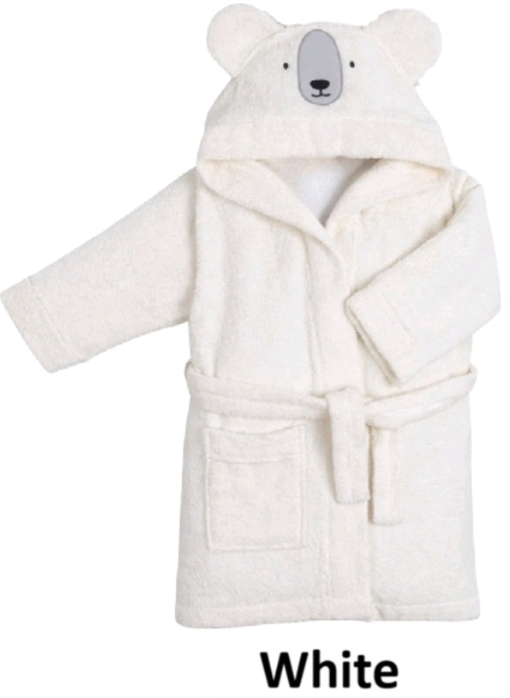Μπουρνούζι με κουκούλα σχέδιο Αρκούδος για 2-3,4-5,6-7 ετών σε λευκό και γκρι χρώμα