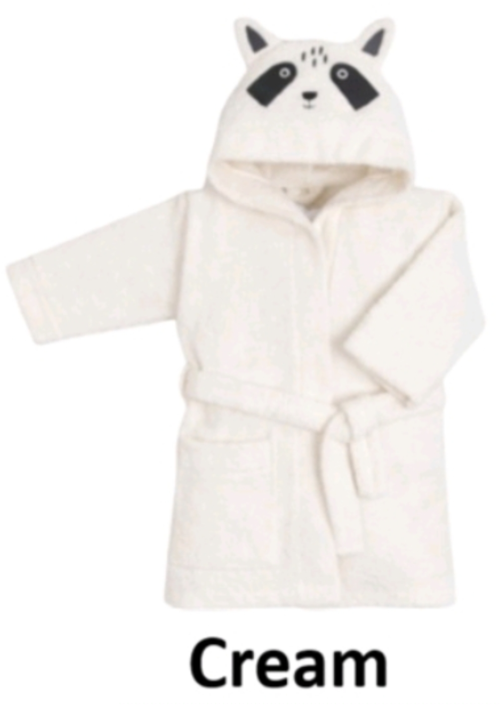 Μπουρνούζι με κουκούλα σχέδιο Ρακούν για ηλικίες 2-3 ,4-5 και 6-7 ετών.Διαθέσιμο σε χρώμα  cream