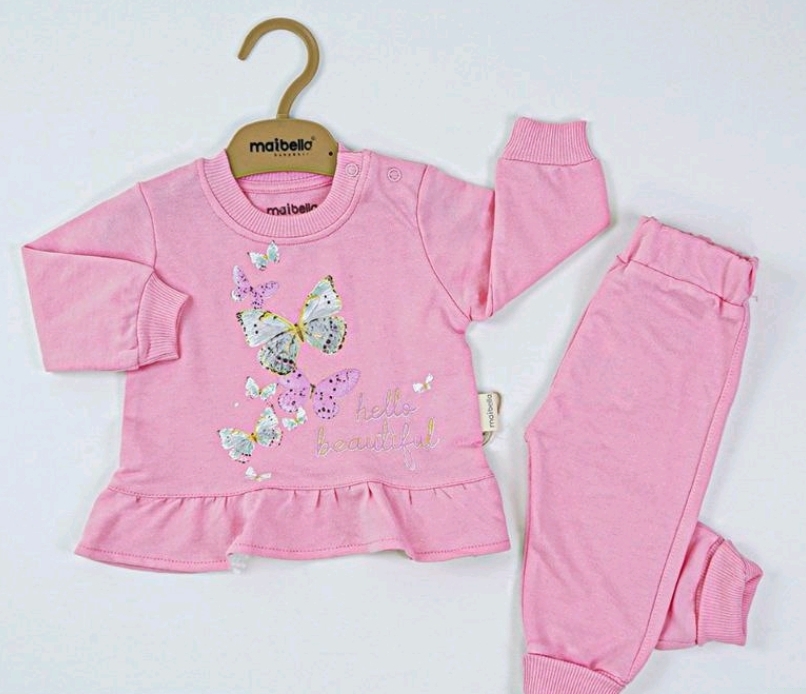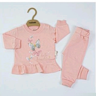 Σετ παντελόνι και μπλούζα με σχέδιο πεταλούδες σε ροζ ανοιχτό,ροζ σκούρο και σωμόν χρώμα
